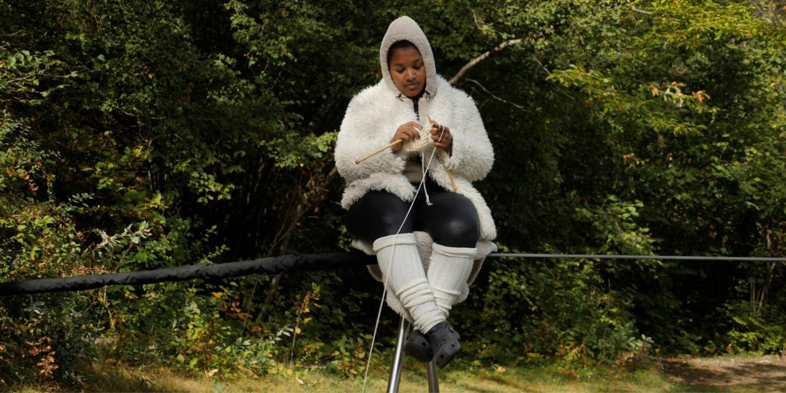 Sur son fil de fer, Estelle Samira Borel défie les regards, déjoue les assignations, affirme la complexité des identités au-delà des clichés. Par le texte, la musique et des fragments autobiographiques, l’artiste donne à entendre la violence du racisme ordinaire et systémique et ses empreintes durables.